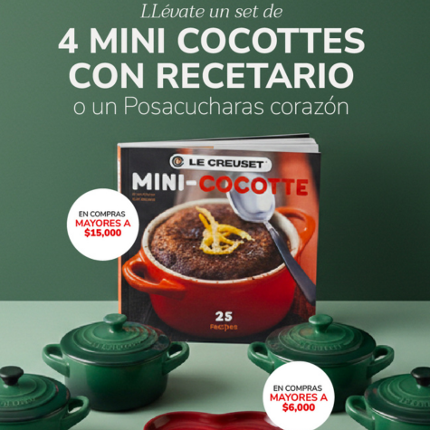 En compras iguales o mayores a $15,000 MXN, agrega a tu bolsa un Set de Mini Cocottes con Recetario, Modelo: 843251158485, con valor de $3,319.00 MXN.